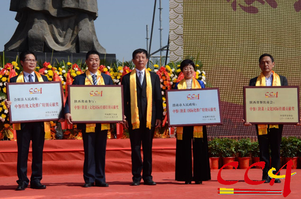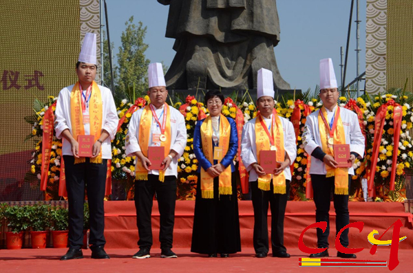 为表彰和鼓励近年来陕西省商务厅、渭南市人民政府、合阳县人民政府以及陕西省餐饮商会对在推动中餐(陕菜)传统文化传播与发展做出的贡献,中国烹饪协会还在祭拜仪式上向上述四单位颁发了表彰奖牌。典礼上还对第八届全国烹饪技能大赛陕西赛区获奖厨师进行了表彰颁奖。