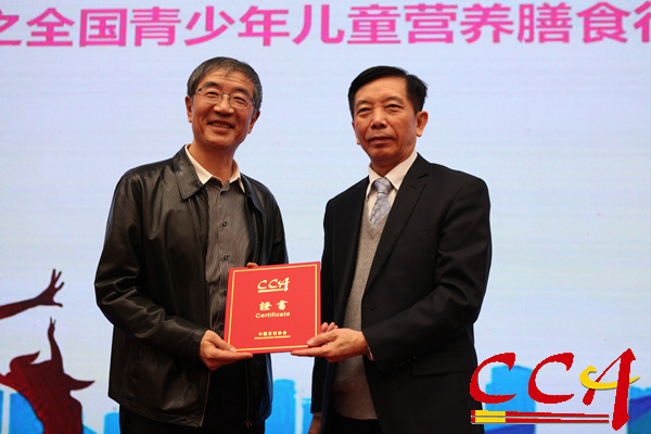 中国烹饪协会姜俊贤会长为关心下一代营养膳食指导委员会李勇主席颁发证书
