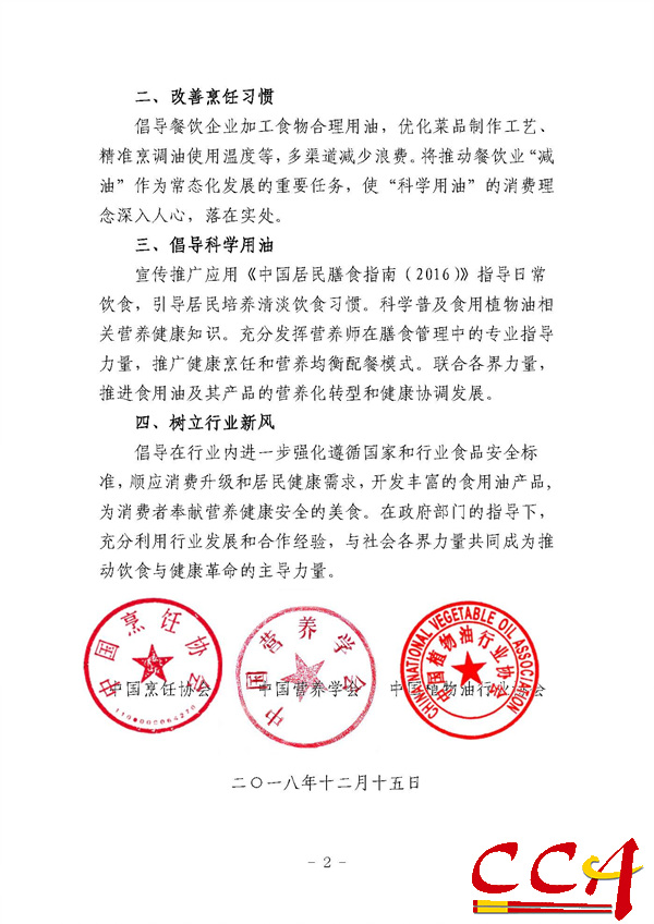 中国烹饪协会、中国营养学会、中国植物油行业协会发布倡议