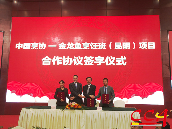 中国烹饪协会、金龙鱼公益慈善基金会、云南省烹饪协会和昆明市盘龙职业高级中学签订“中国烹协——金龙鱼烹饪班”昆明班合作协议