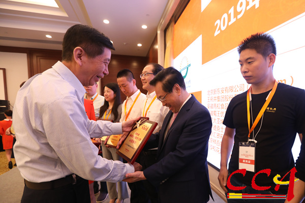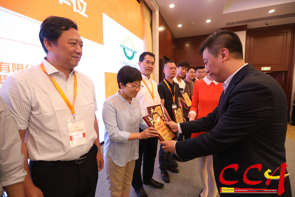 食品安全工作委员会执行副主任、联合利华饮食策划中国区张海涛总裁为获奖单位颁纪念牌